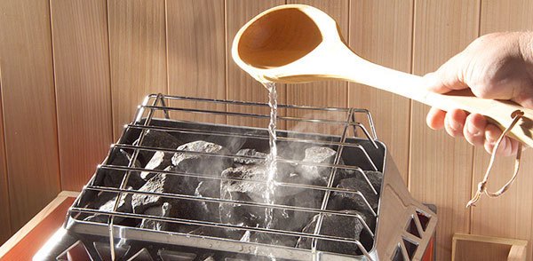 Hình ảnh tưới nước lên bề mặt đá sauna