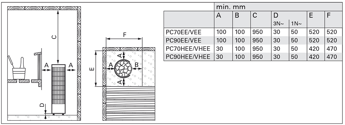 | Phòng xông hơi khô kích thước tối thiểu m3 | 6 |