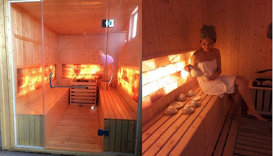 Phòng xông này kết hợp đá muối dùng hơi nóng tăng nhiệt độ phòng dẫn đến toát mồ hôi cho người xông hơi, loại bỏ các độc tố trong cơ thể, giúp giảm stress, đẹp da, hỗ trợ điều trị bệnh, cải thiện sức khỏe, sắc đẹp toàn diện, mang đến sự thư giãn, thoải mái.